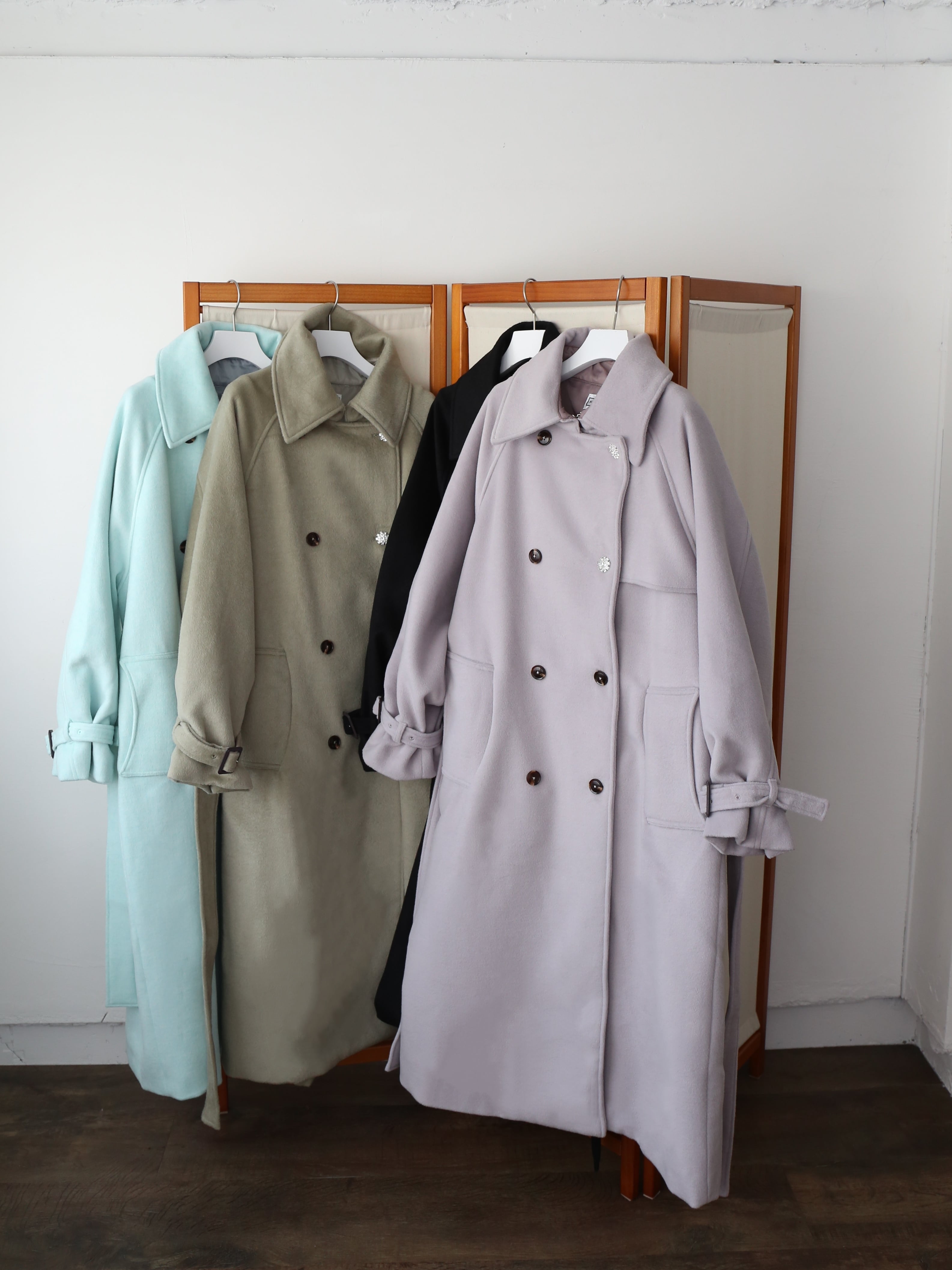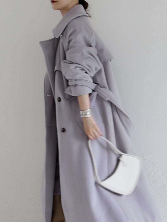 袖はラグランスリーブにすることで、ともすればコンサバになりすぎてしまうトレンチデザインにカジュアルなニュアンスを与えます