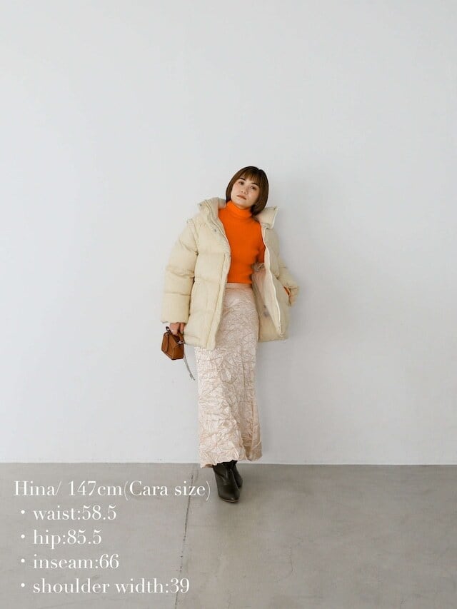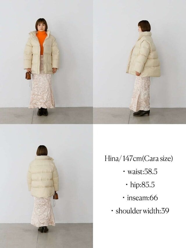 ダウンのボリューミーさを存分に楽しめるよう、裾にかけて緩やかに広がるテントシルエット