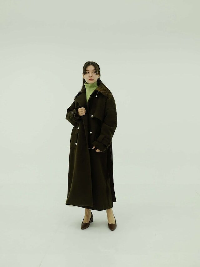トレンチコートのディテールを落とし込んだウール混のロングコート