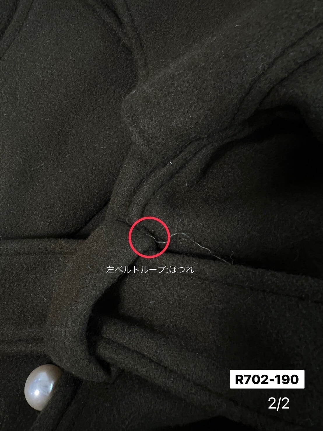 ・左側ベルトループにほつれあり