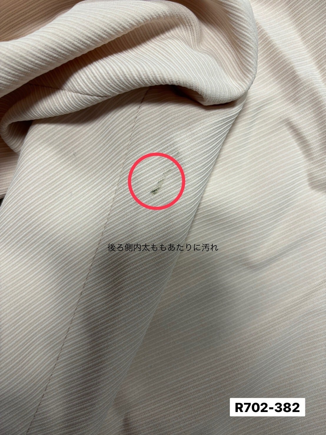・後ろ側内太ももあたりに汚れあり