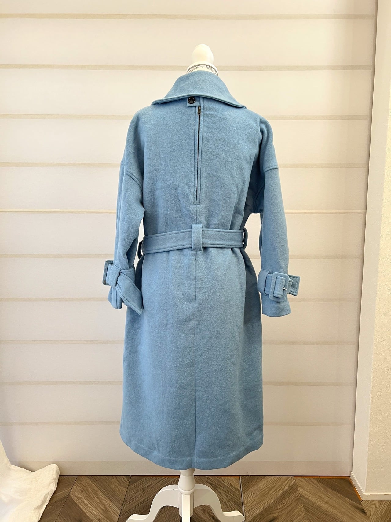 トレンチコートのディテールを落とし込んだウール混のロングコート