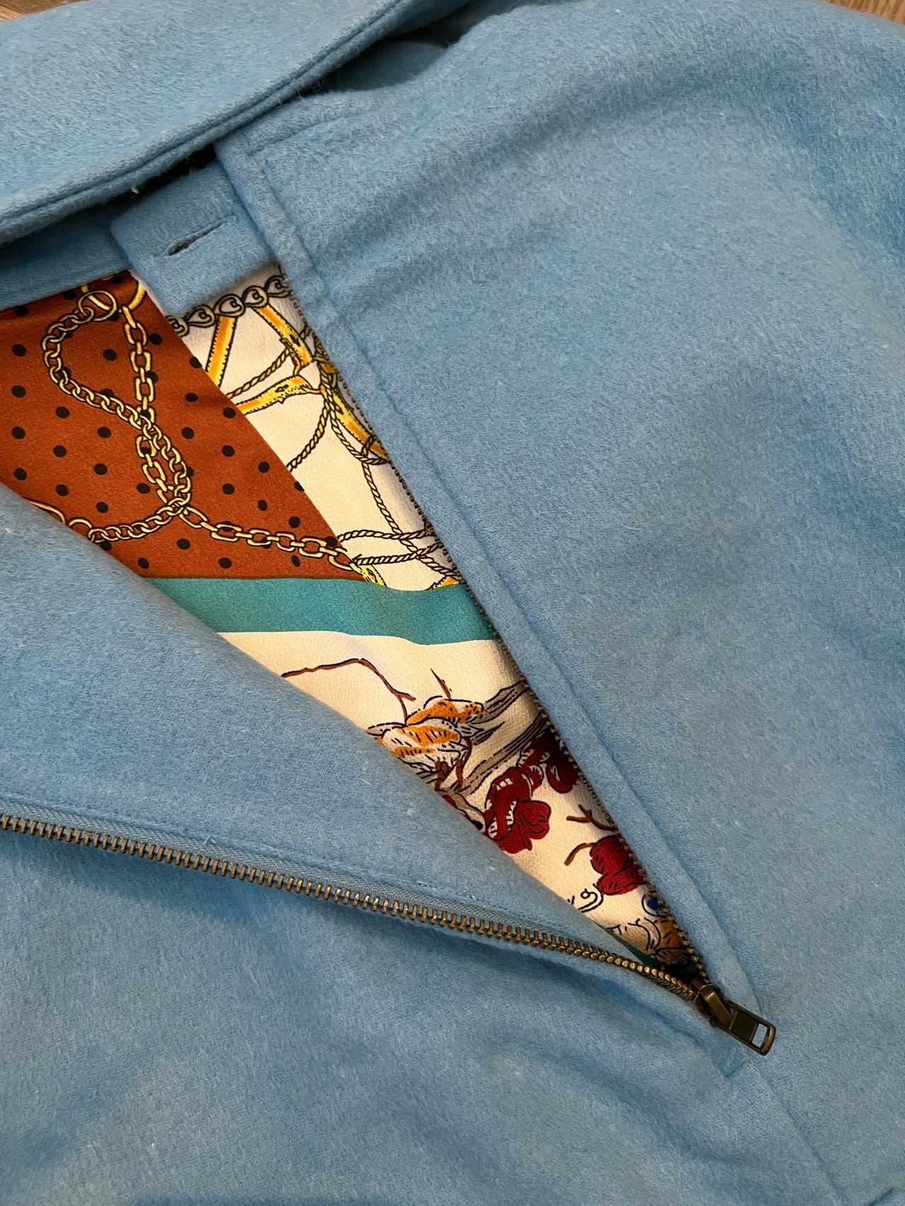 背中のファスナーを開けるとスカーフ柄が覗く仕掛けが?