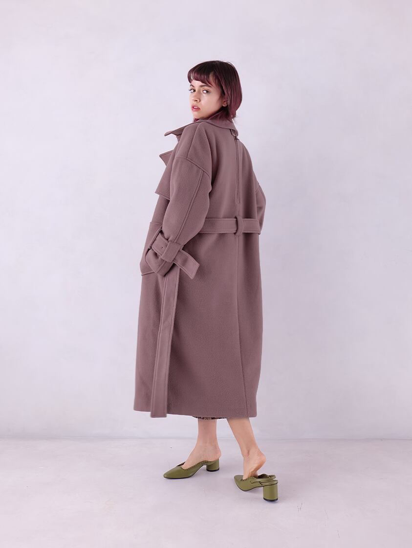 トレンチコートのディテールを落とし込んだウール混のロングコート