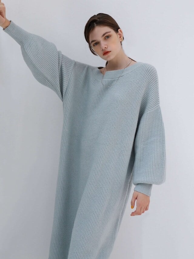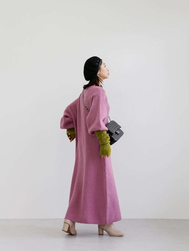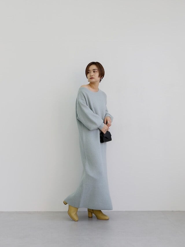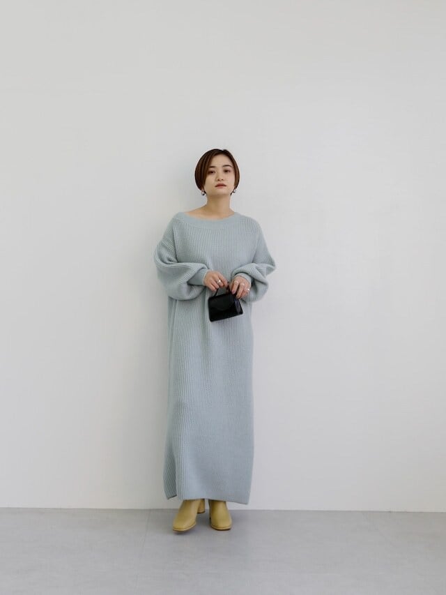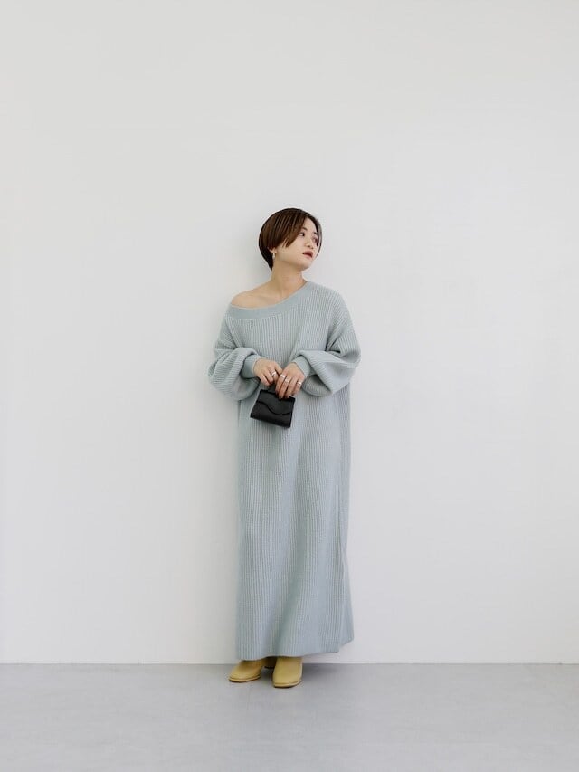 バサッとしたシルエットが魅力のニットワンピース