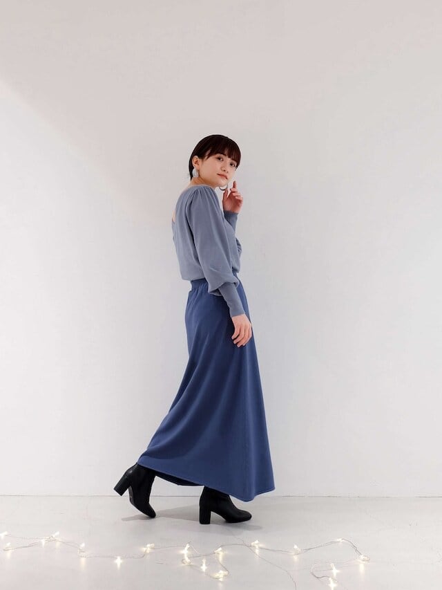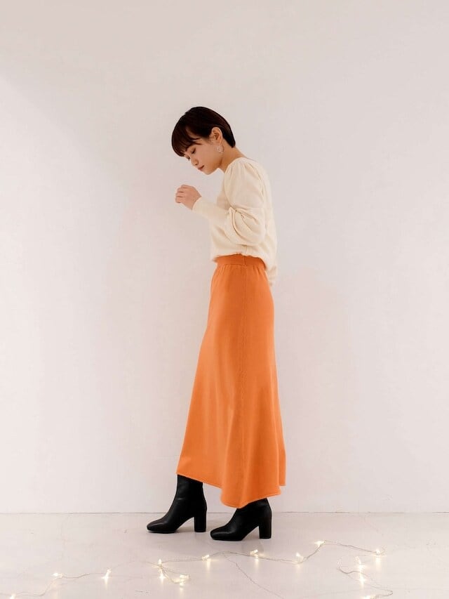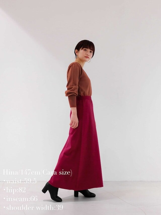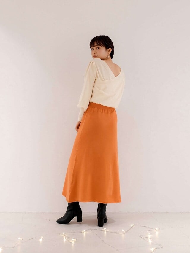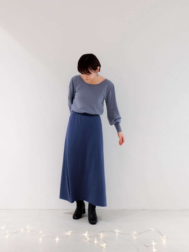 すとんとした落ち感がありながらも身体のラインを拾いすぎない絶妙なスカートシルエットが魅力です