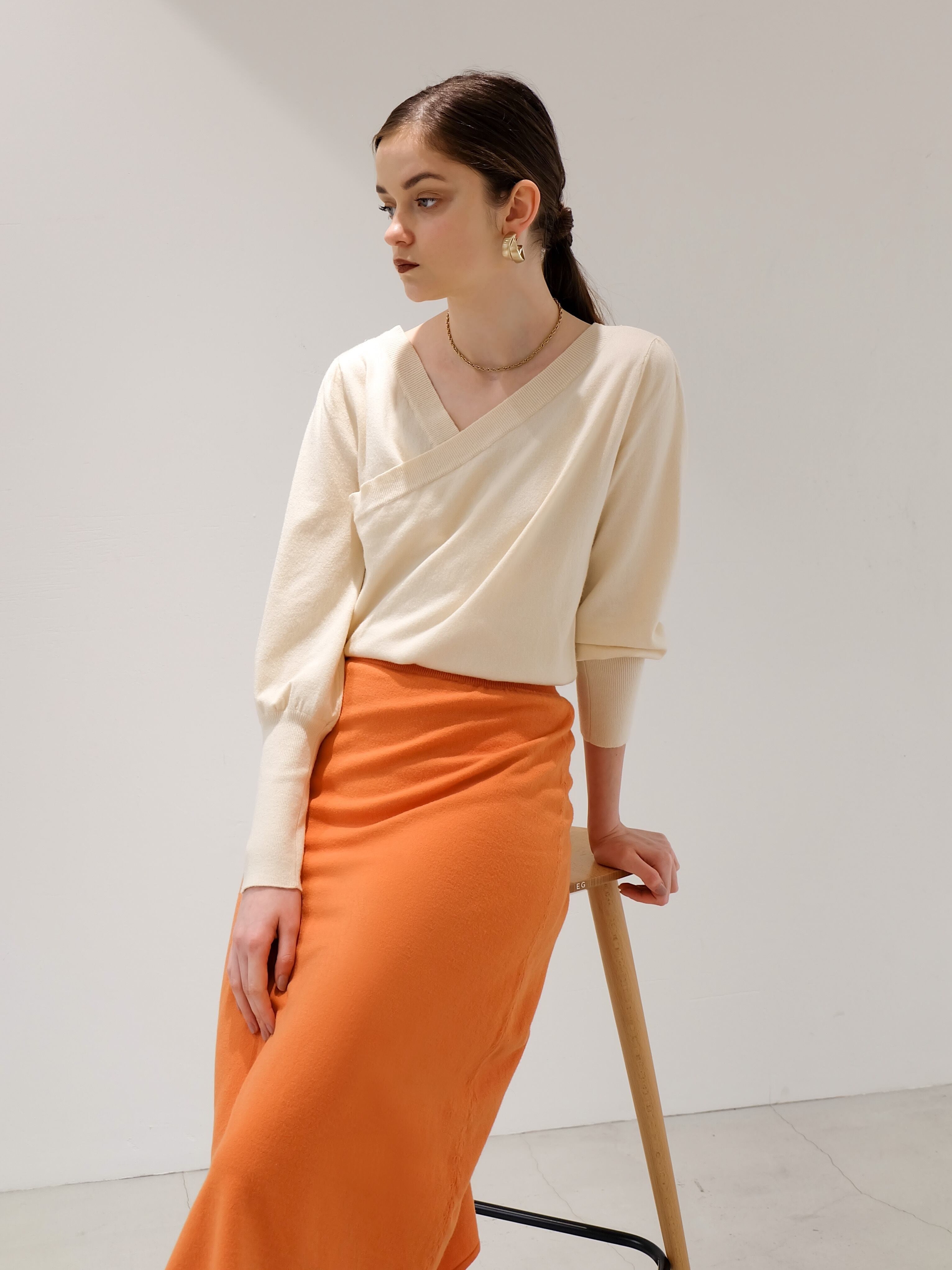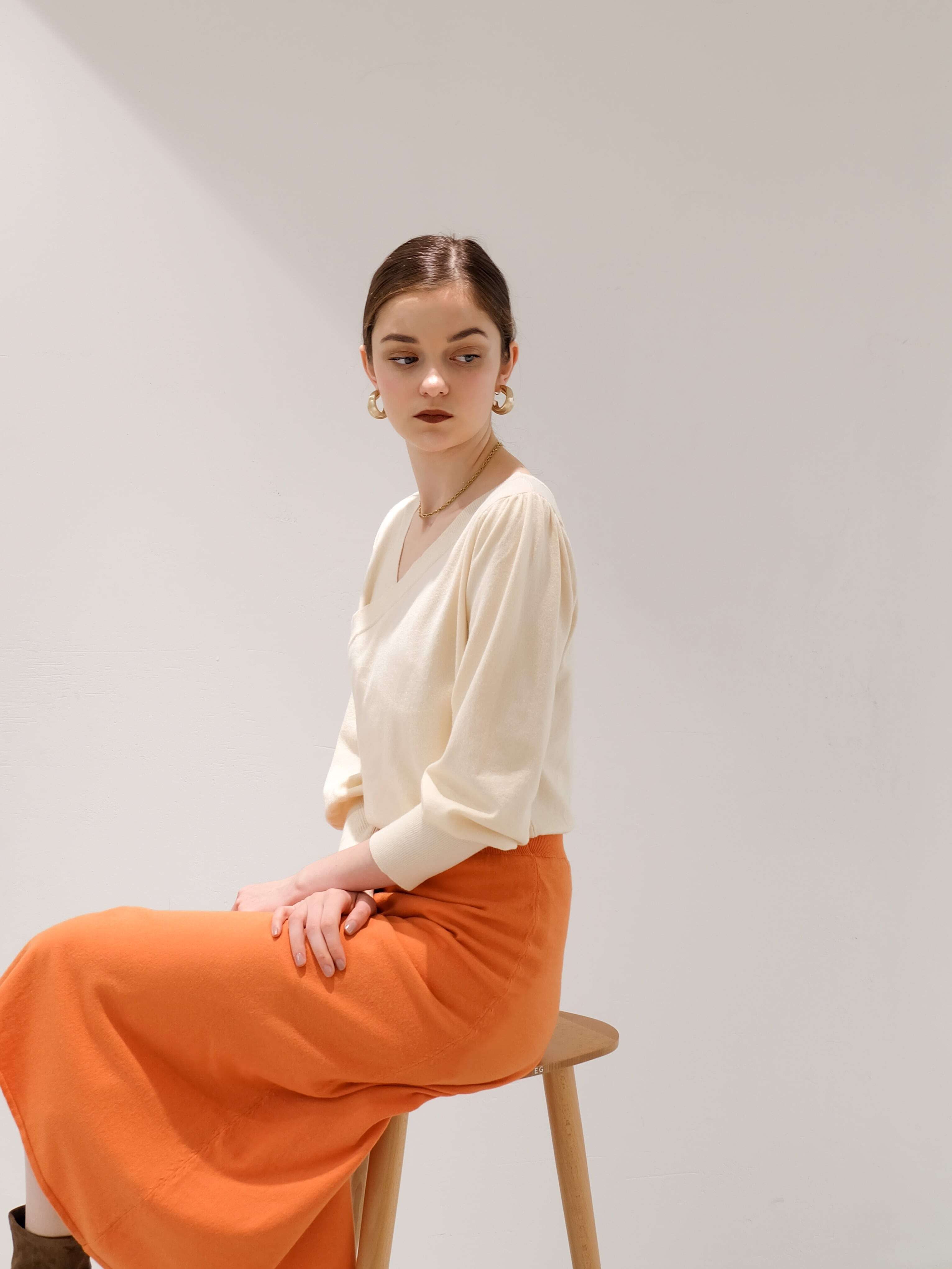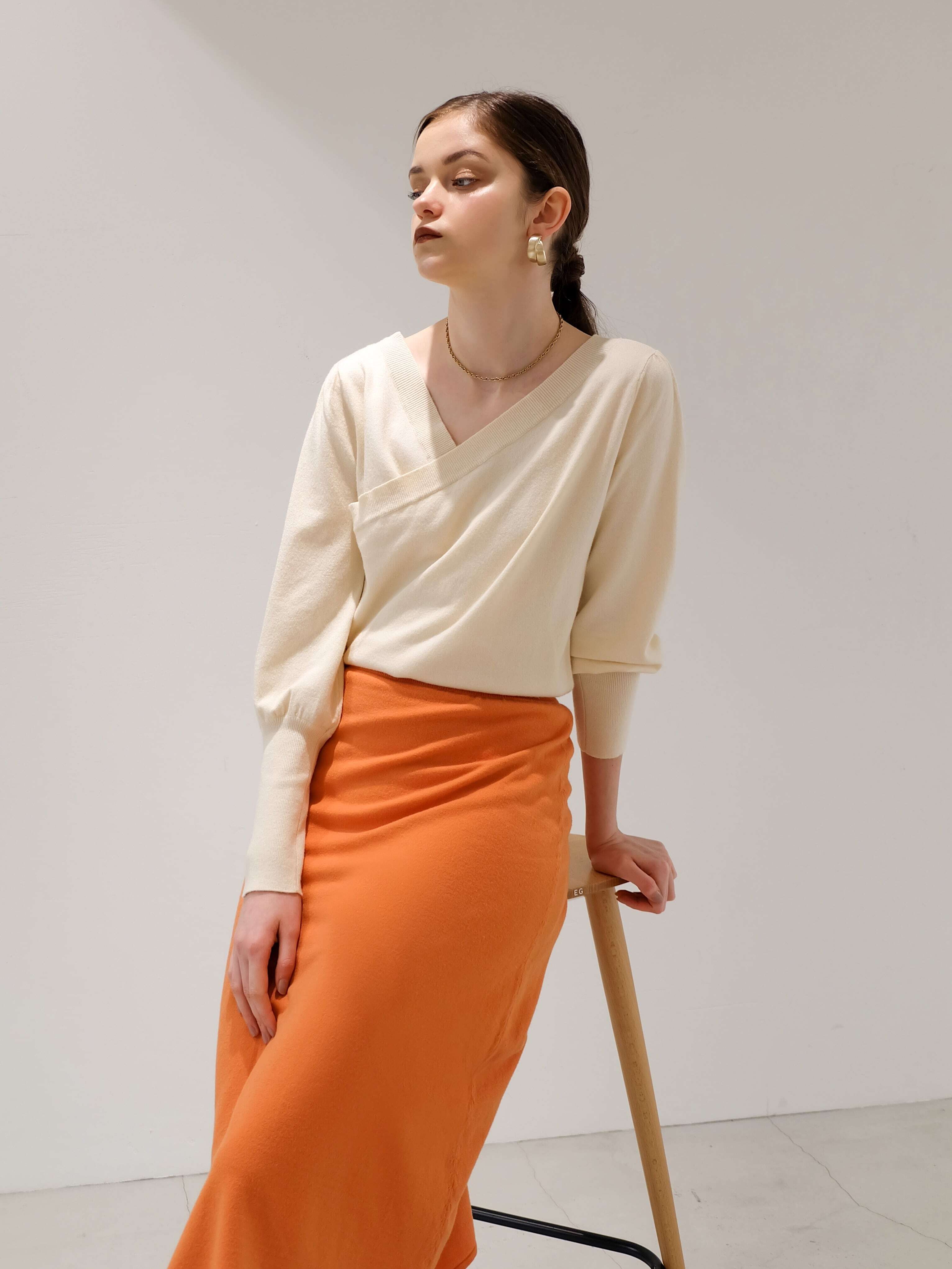 すとんとした落ち感がありながらも身体のラインを拾いすぎない絶妙なスカートシルエットが魅力です