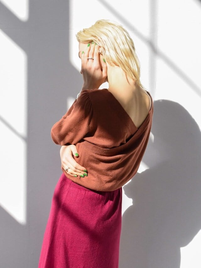 ・brown×berry:ブラウンにベリーのこっくり合わせが新鮮なbrown×berry、ウールコートやトレンチコートの中にも映えてくれる大人っぽく鮮やかな色合わせ